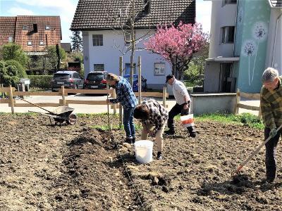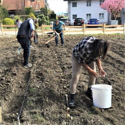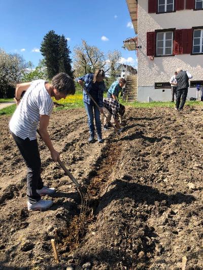 Wir bekamen am Tag der Pflanzung Hilfe von Damian Villiger, der uns durch das (1) Aufbereiten des Bodens viel manuelle Arbeit erspart hat. Ein herzliches Dankeschön nochmals an dieser Stelle.